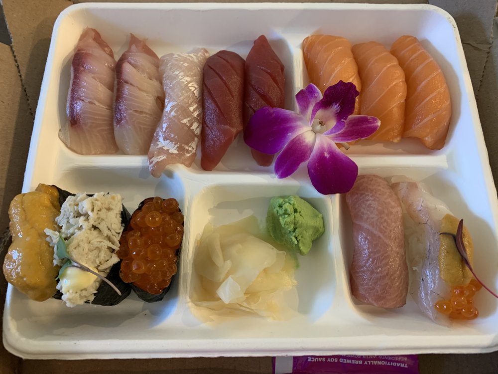 Nigiri: 4pc Toro, 4pc Uni, 4pc Tuna, 4pc Salmon, 4pc Yellowtail,4pc Ikura, 4pc Hokkaido Scallops, 4pc Special Fish of the week